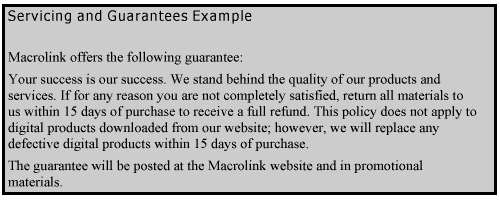 If you have set up a working copy of your business plan using the Shell™, this information will be entered under section 3 “Marketing” under the heading 3.6 “Servicing and Guarantees”