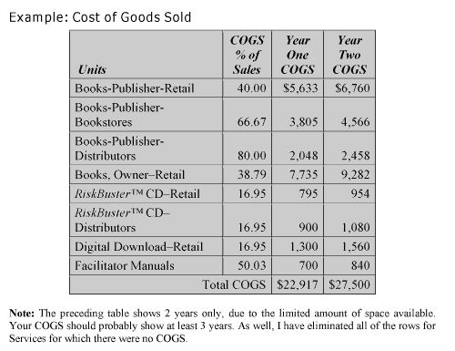 Determine what your products and services will cost and develop your Cost of Goods Sold (COGS) Element.