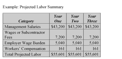 You can use the table below in your business plan, or simply show the total labor projection as one line in the cash flow.
